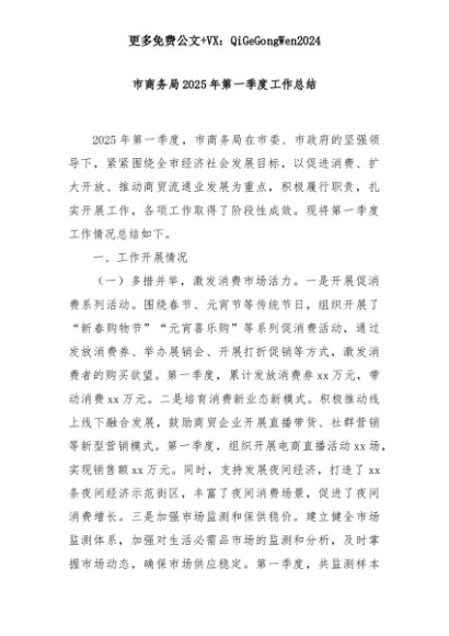 【七哥公文】2025年:市商务局2025年第一季度工作总结+更多免费公文+VX:QiGeGongWen2024+更多免费公文+VX:QiGeGongWen2024