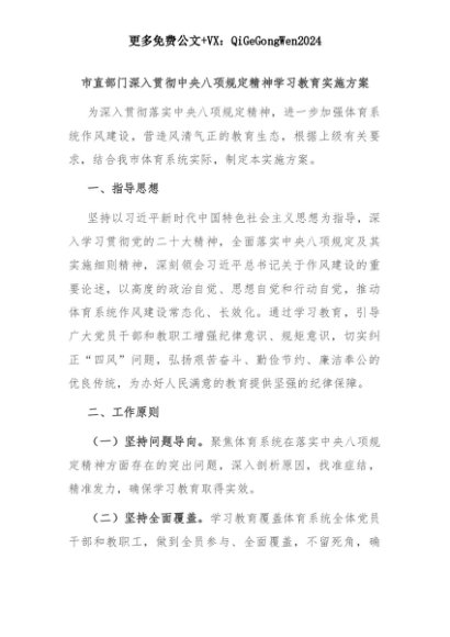 【七哥公文】2025年:市直部门深入贯彻中央八项规定精神学习教育实施方案+更多免费公文+VX:QiGeGongWen2024+更多免费公文+VX:QiGeGongWen2024