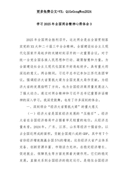 【七哥公文】2025年:学习2025年全国两会精神心得体会3+更多免费公文+VX:QiGeGongWen2024+更多免费公文+VX:QiGeGongWen2024