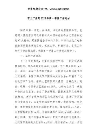 【七哥公文】2025年:市文广旅局2025年第一季度工作总结+更多免费公文+VX:QiGeGongWen2024+更多免费公文+VX:QiGeGongWen2024