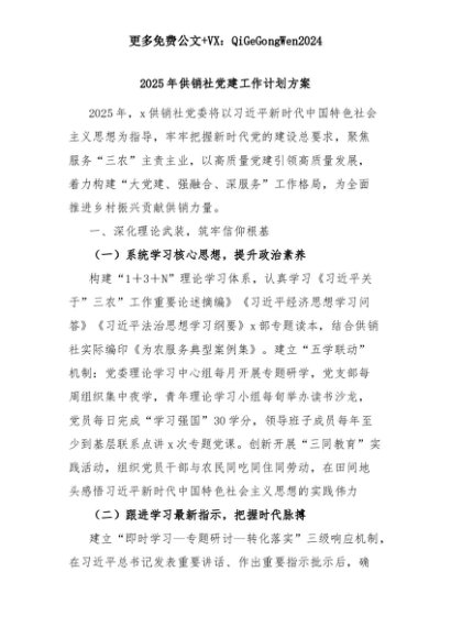 【七哥公文】2025年:2025年供销社党建工作计划方案+更多免费公文+VX:QiGeGongWen2024+更多免费公文+VX:QiGeGongWen2024