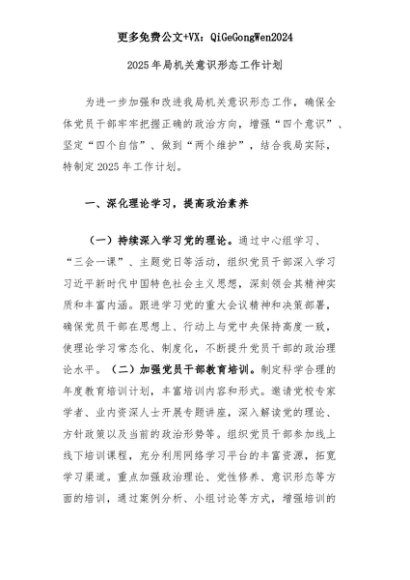 【七哥公文】2025年:2025年局机关意识形态工作计划+更多免费公文+VX:QiGeGongWen2024+更多免费公文+VX:QiGeGongWen2024