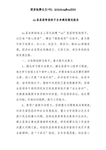 【七哥公文】2025年:xx县县委常委班子自身建设情况报告+更多免费公文+VX:QiGeGongWen2024+更多免费公文+VX:QiGeGongWen2024