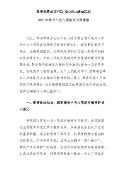 【七哥公文】2025年:2025年学习中央八项规定心得感悟+更多免费公文+VX:QiGeGongWen2024+更多免费公文+VX:QiGeGongWen2024