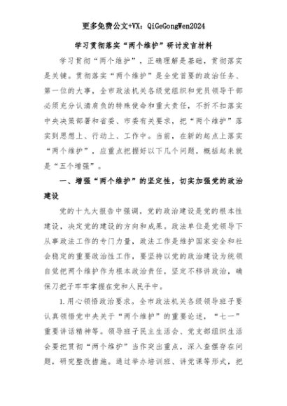 【七哥公文】2025年:学习贯彻落实“两个维护”研讨发言材料+更多免费公文+VX:QiGeGongWen2024+更多免费公文+VX:QiGeGongWen2024