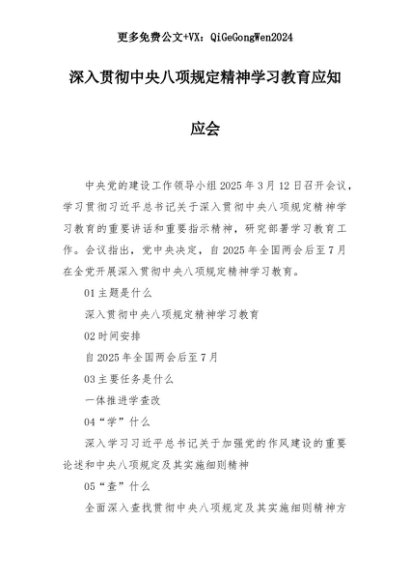 【七哥公文】2025年:深入贯彻中央八项规定精神学习教育应知应会 (2)+更多免费公文+VX:QiGeGongWen2024+更多免费公文+VX:QiGeGongWen2024