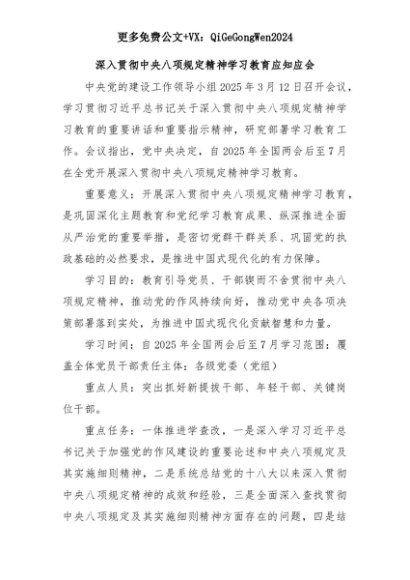 【七哥公文】2025年:深入贯彻中央八项规定精神学习教育应知应会+更多免费公文+VX:QiGeGongWen2024+更多免费公文+VX:QiGeGongWen2024