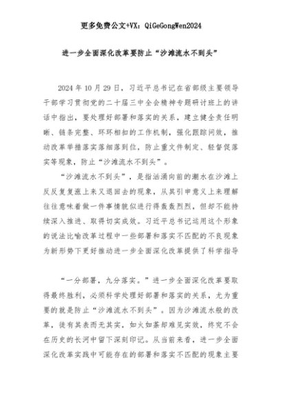 【七哥公文】2025年:进一步全面深化改革要防止“沙滩流水不到头”+更多免费公文+VX:QiGeGongWen2024+更多免费公文+VX:QiGeGongWen2024