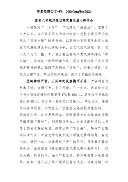 【七哥公文】2025年:落实八项规定推动高质量发展心得体会+更多免费公文+VX:QiGeGongWen2024+更多免费公文+VX:QiGeGongWen2024