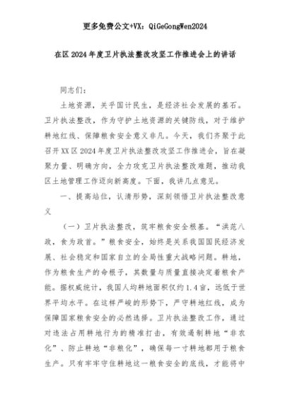 【七哥公文】2025年:在区2024年度卫片执法整改攻坚工作推进会上的讲话+更多免费公文+VX:QiGeGongWen2024+更多免费公文+VX:QiGeGongWen2024