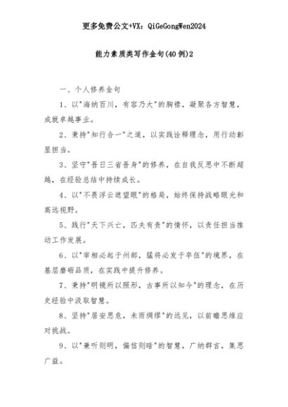 【七哥公文】2025年:能力素质类写作金句40例2+更多免费公文+VX:QiGeGongWen2024+更多免费公文+VX:QiGeGongWen2024