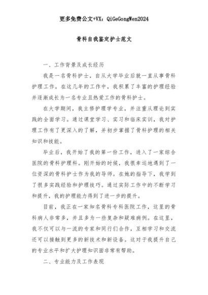【七哥公文】2025年:骨科自我鉴定护士范文+更多免费公文+VX:QiGeGongWen2024+更多免费公文+VX:QiGeGongWen2024