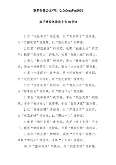 【七哥公文】2025年:班子建设类排比金句40例2+更多免费公文+VX:QiGeGongWen2024+更多免费公文+VX:QiGeGongWen2024