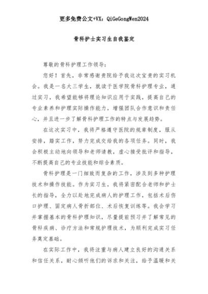 【七哥公文】2025年:骨科护士实习生自我鉴定+更多免费公文+VX:QiGeGongWen2024+更多免费公文+VX:QiGeGongWen2024