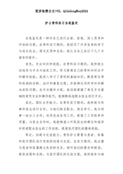 【七哥公文】2025年:护士骨科实习自我鉴定+更多免费公文+VX:QiGeGongWen2024+更多免费公文+VX:QiGeGongWen2024