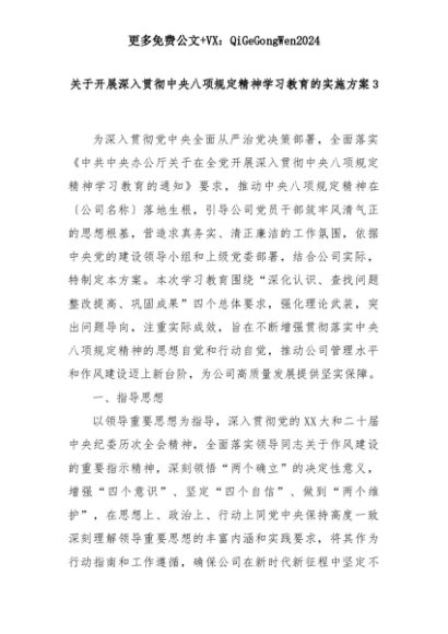 【七哥公文】2025年:关于开展深入贯彻中央八项规定精神学习教育的实施方案3+更多免费公文+VX:QiGeGongWen2024+更多免费公文+VX:QiGeGongWen2024