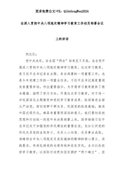 【七哥公文】2025年:在深入贯彻中央八项规定精神学习教育工作动员部署会议上的讲话+更多免费公文+VX:QiGeGongWen2024+更多免费公文+VX:QiGeGongWen2024