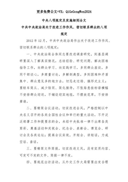 【七哥公文】2025年:中央八项规定及实施细则全文+更多免费公文+VX:QiGeGongWen2024+更多免费公文+VX:QiGeGongWen2024