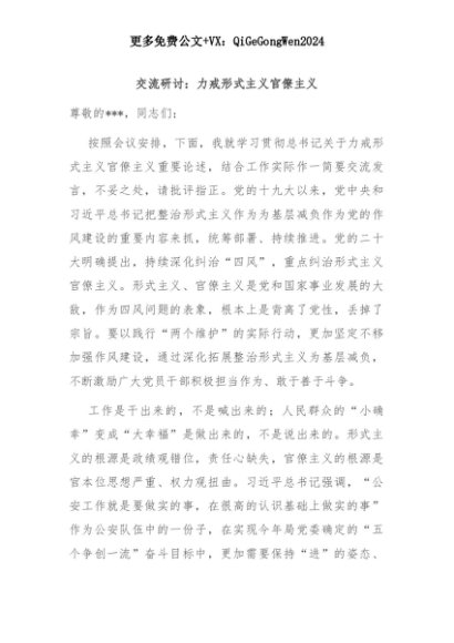【七哥公文】2025年:交流研讨:力戒形式主义官僚主义+更多免费公文+VX:QiGeGongWen2024+更多免费公文+VX:QiGeGongWen2024