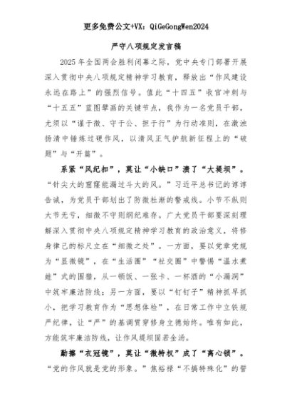 【七哥公文】2025年:严守八项规定发言稿+更多免费公文+VX:QiGeGongWen2024+更多免费公文+VX:QiGeGongWen2024