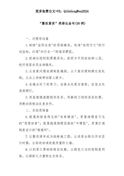 【七哥公文】2025年:“整改落实”类排比金句30例+更多免费公文+VX:QiGeGongWen2024+更多免费公文+VX:QiGeGongWen2024