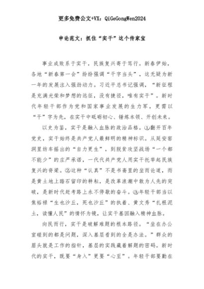 【七哥公文】2025年:申论范文:抓住“实干”这个传家宝+更多免费公文+VX:QiGeGongWen2024+更多免费公文+VX:QiGeGongWen2024