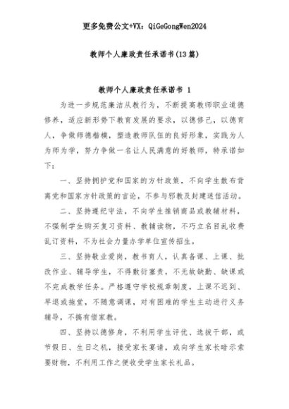 【七哥公文】2025年:(13篇)教师个人廉政责任承诺书+更多免费公文+VX:QiGeGongWen2024+更多免费公文+VX:QiGeGongWen2024