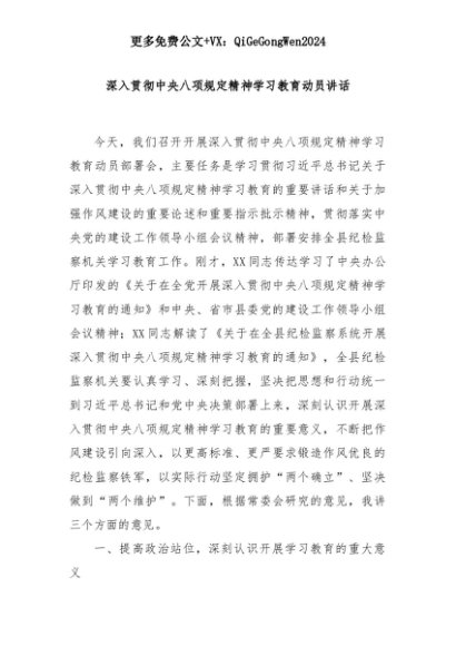 【七哥公文】2025年:深入贯彻中央八项规定精神学习教育动员讲话+更多免费公文+VX:QiGeGongWen2024+更多免费公文+VX:QiGeGongWen2024