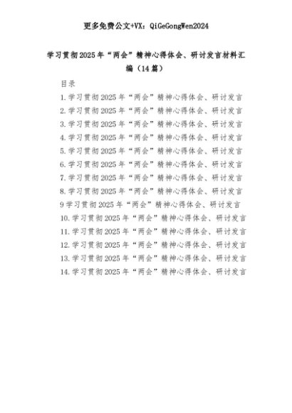 【七哥公文】2025年:(14篇)学习贯彻2025年“两会”精神心得体会、研讨发言材料汇编+更多免费公文+VX:QiGeGongWen2024+更多免费公文+VX:QiGeGongWen2024