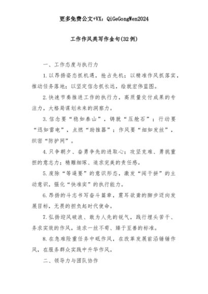【七哥公文】2025年:(32例)工作作风类写作金句+更多免费公文+VX:QiGeGongWen2024+更多免费公文+VX:QiGeGongWen2024