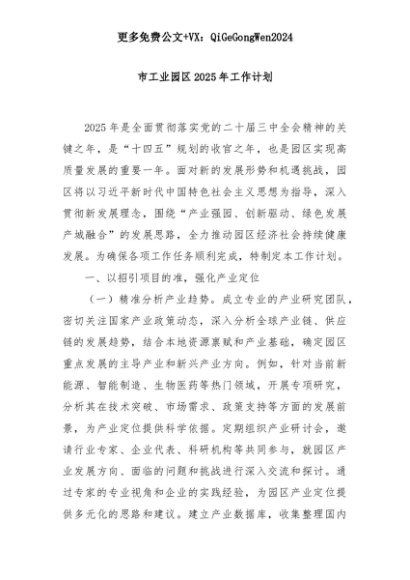 【七哥公文】2025年:市工业园区2025年工作计划+更多免费公文+VX:QiGeGongWen2024+更多免费公文+VX:QiGeGongWen2024