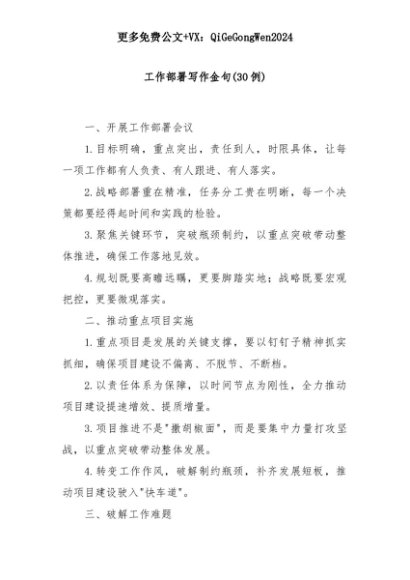 【七哥公文】2025年:(30例)工作部署写作金句+更多免费公文+VX:QiGeGongWen2024+更多免费公文+VX:QiGeGongWen2024
