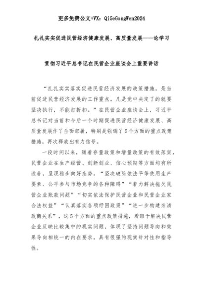 【七哥公文】2025年:扎扎实实促进民营经济健康发展、高质量发展——论学习贯彻习近平总书记在民营企业座谈会上重要讲话+更多免费公文+VX:QiGeGongWen2024+更多免费公文+VX:QiGeGongWen2024