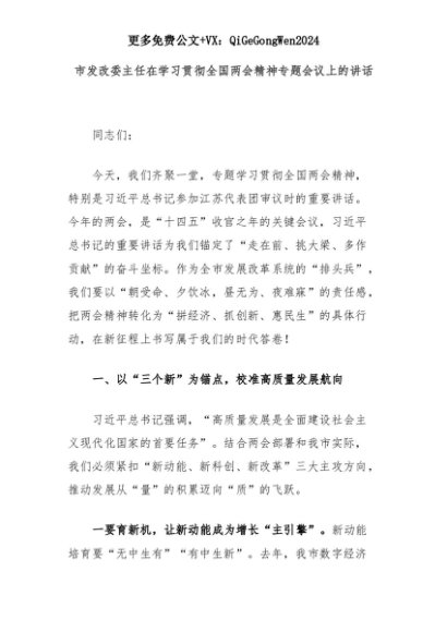 【七哥公文】2025年:市发改委主任在学习贯彻全国两会精神专题会议上的讲话+更多免费公文+VX:QiGeGongWen2024+更多免费公文+VX:QiGeGongWen2024
