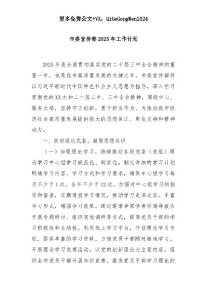 【七哥公文】2025年:市委宣传部2025年工作计划+更多免费公文+VX:QiGeGongWen2024+更多免费公文+VX:QiGeGongWen2024