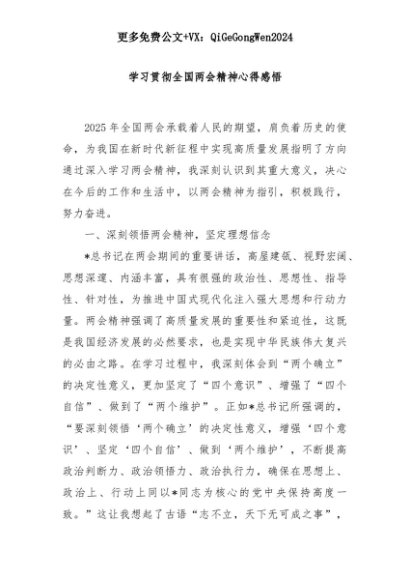 【七哥公文】2025年:学习贯彻全国两会精神心得感悟+更多免费公文+VX:QiGeGongWen2024+更多免费公文+VX:QiGeGongWen2024