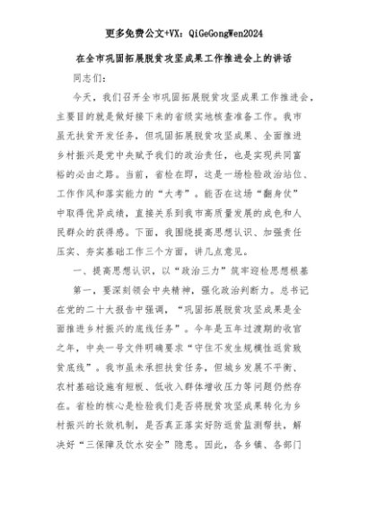 【七哥公文】2025年:在全市巩固拓展脱贫攻坚成果工作推进会上的讲话+更多免费公文+VX:QiGeGongWen2024+更多免费公文+VX:QiGeGongWen2024