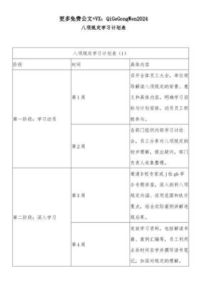 【七哥公文】2025年:八项规定学习计划表+更多免费公文+VX:QiGeGongWen2024+更多免费公文+VX:QiGeGongWen2024