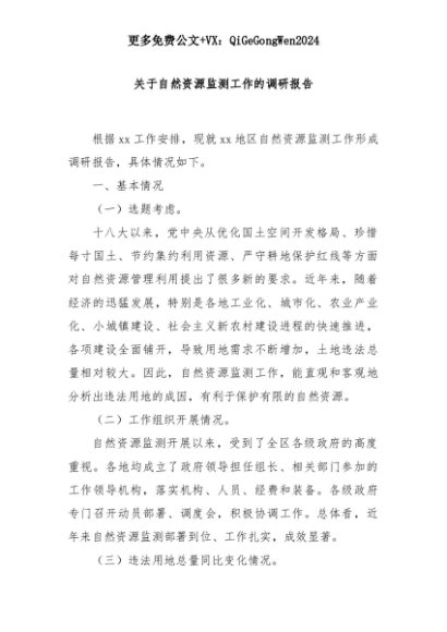 【七哥公文】2025年:关于自然资源监测工作的调研报告+更多免费公文+VX:QiGeGongWen2024+更多免费公文+VX:QiGeGongWen2024