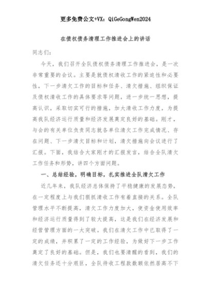 【七哥公文】2025年:在债权债务清理工作推进会上的讲话+更多免费公文+VX:QiGeGongWen2024+更多免费公文+VX:QiGeGongWen2024