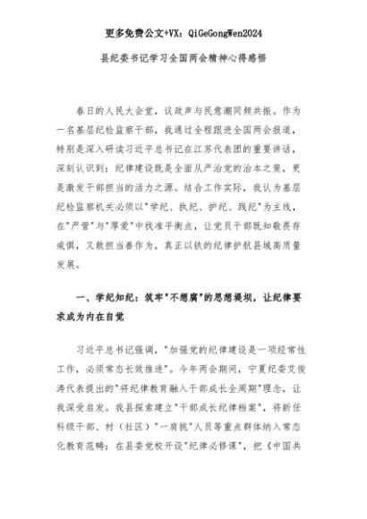 【七哥公文】2025年:县纪委书记学习全国两会精神心得感悟+更多免费公文+VX:QiGeGongWen2024+更多免费公文+VX:QiGeGongWen2024