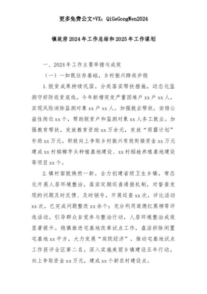 【七哥公文】2025年:镇政府2024年工作总结和2025年工作谋划+更多免费公文+VX:QiGeGongWen2024+更多免费公文+VX:QiGeGongWen2024