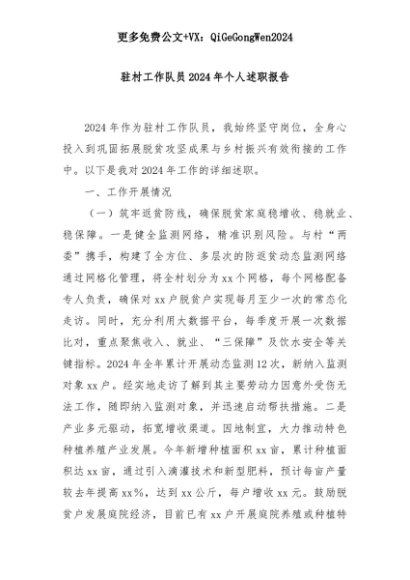 【七哥公文】2025年:驻村工作队员2024年个人述职报告+更多免费公文+VX:QiGeGongWen2024+更多免费公文+VX:QiGeGongWen2024