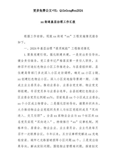 【七哥公文】2025年:xx街道基层治理工作汇报+更多免费公文+VX:QiGeGongWen2024+更多免费公文+VX:QiGeGongWen2024