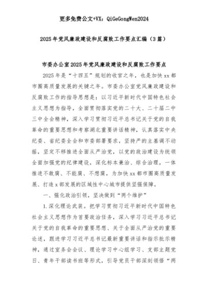 【七哥公文】2025年:(3篇)2025年党风廉政建设和反腐败工作要点汇编+更多免费公文+VX:QiGeGongWen2024+更多免费公文+VX:QiGeGongWen2024