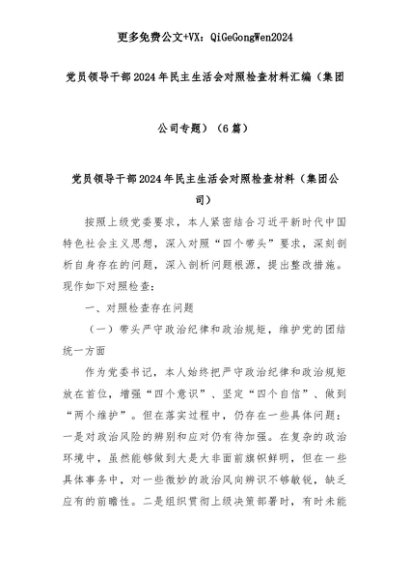 【七哥公文】2025年:(6篇)党员领导干部2024年民主生活会对照检查材料汇编(集团公司专题)+更多免费公文+VX:QiGeGongWen2024+更多免费公文+VX:QiGeGongWen2024