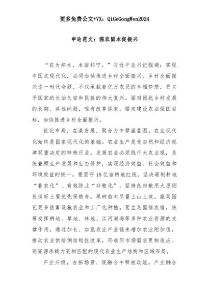 【七哥公文】2025年:申论范文:强农固本促振兴+更多免费公文+VX:QiGeGongWen2024+更多免费公文+VX:QiGeGongWen2024