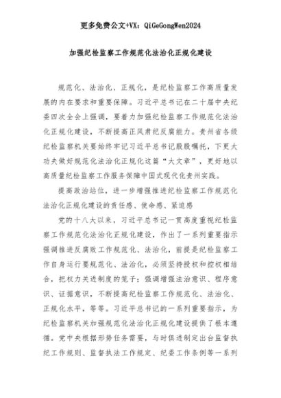 【七哥公文】2025年:加强纪检监察工作规范化法治化正规化建设+更多免费公文+VX:QiGeGongWen2024+更多免费公文+VX:QiGeGongWen2024