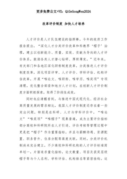 【七哥公文】2025年:改革评价制度 加快人才培养+更多免费公文+VX:QiGeGongWen2024+更多免费公文+VX:QiGeGongWen2024