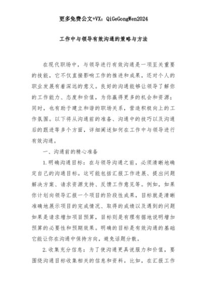 【七哥公文】2025年:工作中与领导有效沟通的策略与方法+更多免费公文+VX:QiGeGongWen2024+更多免费公文+VX:QiGeGongWen2024